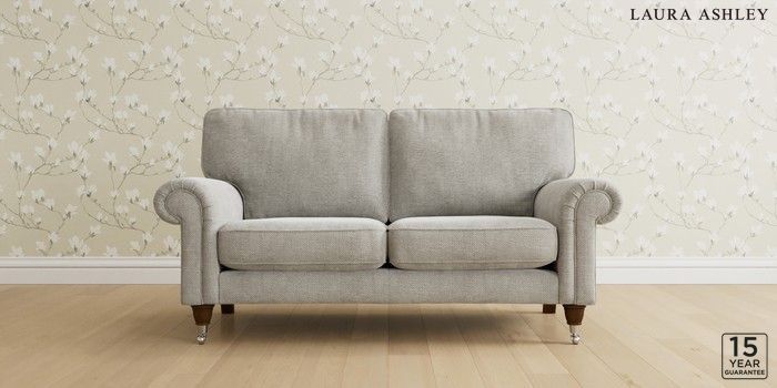 6.12.1 Buy Kingston by Laura Ashley 2 Seater Sofa Edwin Chenille Silver Grey Low Chrome Castor - Teak from the Next UK online shop Click here to use our accessible website