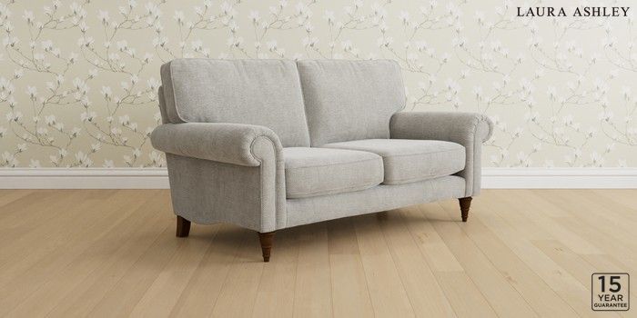 6.12.1 Buy Kingston by Laura Ashley 2 Seater Sofa Edwin Chenille Silver Grey Low Turned - Teak from the Next UK online shop Click here to use our accessible website