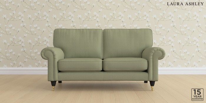 6.12.1 Buy Kingston by Laura Ashley 2 Seater Sofa Edwin Herringbone Hedgerow Green Low Brass Castor - Black from the Next UK online shop Click here to use our accessible website
