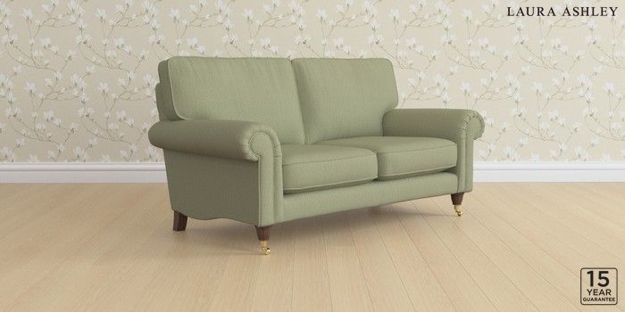 6.12.1 Buy Kingston by Laura Ashley 2 Seater Sofa Edwin Herringbone Hedgerow Green Low Brass Castor - Chestnut from the Next UK online shop Click here to use our accessible website