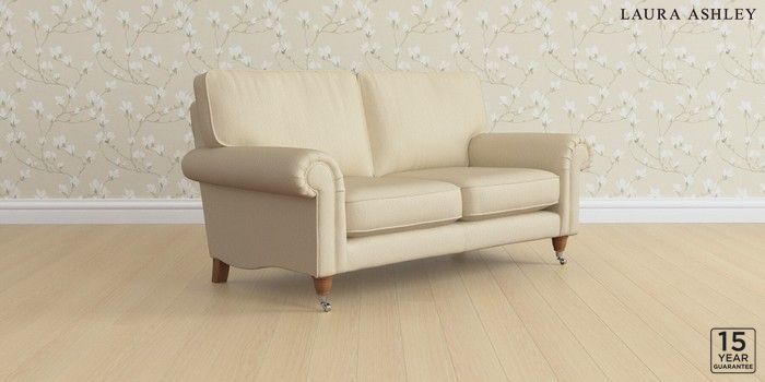 6.12.1 Buy Kingston by Laura Ashley 2 Seater Sofa Edwin Herringbone Natural Low Chrome Castor - Teak from the Next UK online shop Click here to use our accessible website