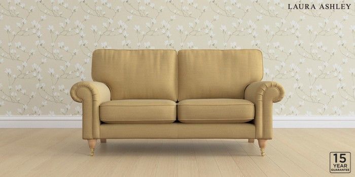 6.12.1 Buy Kingston by Laura Ashley 2 Seater Sofa Kinsham Ochre Yellow Low Brass Castor - Light Oak from the Next UK online shop Click here to use our accessible website