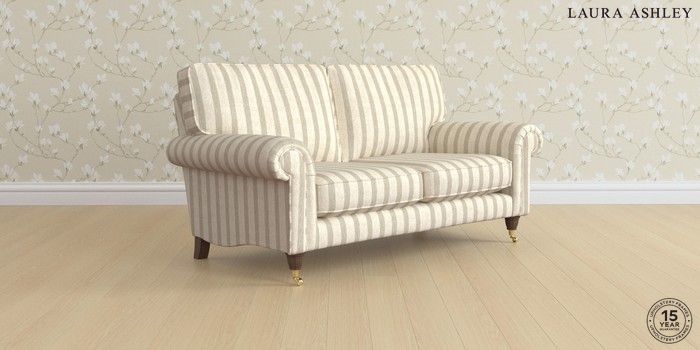 6.12.1 Buy Kingston by Laura Ashley 2 Seater Sofa Kinsham Stripe Natural Low Brass Castor - Chestnut from the Next UK online shop Click here to use our accessible website