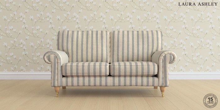 6.12.1 Buy Kingston by Laura Ashley 2 Seater Sofa Kinsham Stripe Seaspray Blue Low Brass Castor - Light Oak from the Next UK online shop Click here to use our accessible website