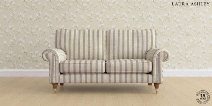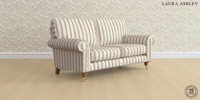 6.12.1 Buy Kingston by Laura Ashley 2 Seater Sofa Kinsham Stripe Seaspray Blue Low Brass Castor - Teak from the Next UK online shop Click here to use our accessible website