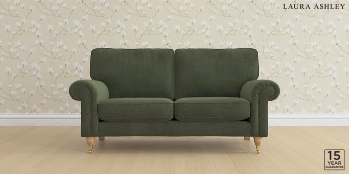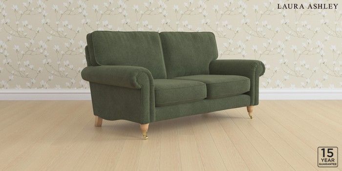 6.12.1 Buy Kingston by Laura Ashley 2 Seater Sofa Lundar Chenille Ivy Green Low Brass Castor - Light Oak from the Next UK online shop Click here to use our accessible website