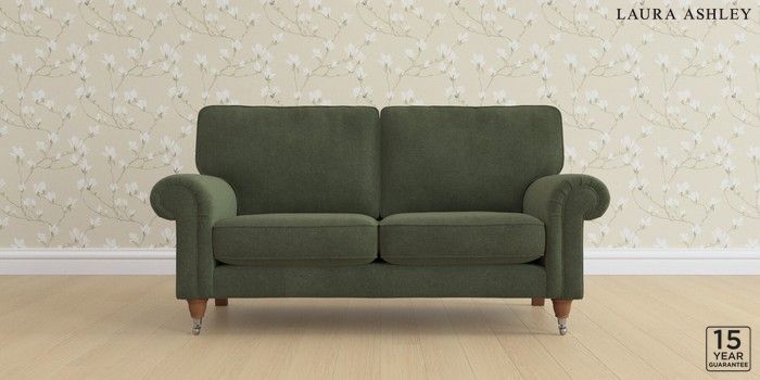 6.12.1 Buy Kingston by Laura Ashley 2 Seater Sofa Lundar Chenille Ivy Green Low Chrome Castor - Teak from the Next UK online shop Click here to use our accessible website