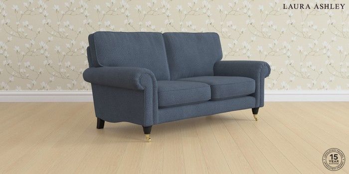 6.12.1 Buy Kingston by Laura Ashley 2 Seater Sofa Lundar Chenille Navy Blue Low Brass Castor - Black from the Next UK online shop Click here to use our accessible website