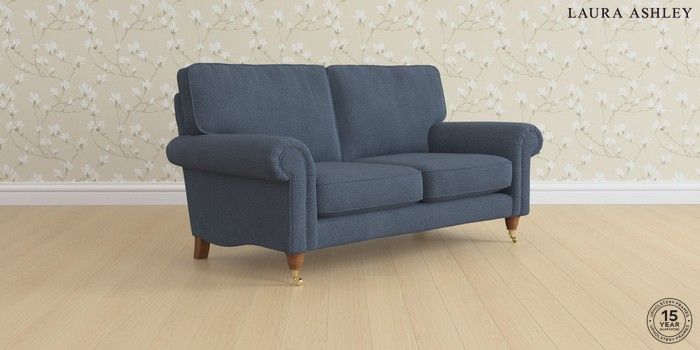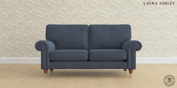 6.12.1 Buy Kingston by Laura Ashley 2 Seater Sofa Lundar Chenille Navy Blue Low Brass Castor - Teak from the Next UK online shop Click here to use our accessible website