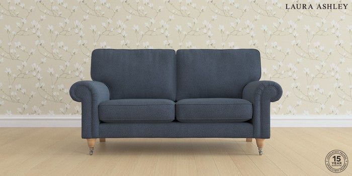 6.12.1 Buy Kingston by Laura Ashley 2 Seater Sofa Lundar Chenille Navy Blue Low Chrome Castor - Light Oak from the Next UK online shop Click here to use our accessible website