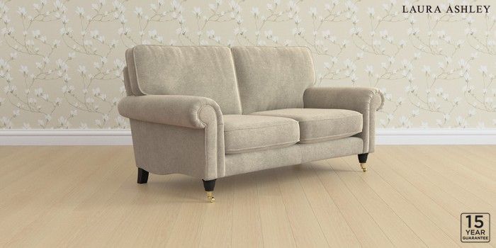 6.12.1 Buy Kingston by Laura Ashley 2 Seater Sofa Lundar Chenille Truffle Natural Low Brass Castor - Black from the Next UK online shop Click here to use our accessible website