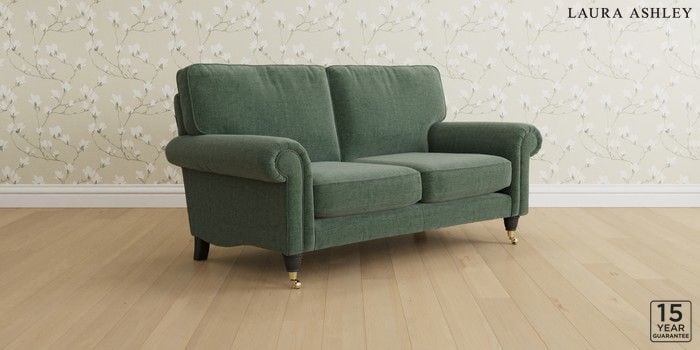 6.12.1 Buy Kingston by Laura Ashley 2 Seater Sofa Nantmor Fern Green Low Brass Castor - Black from the Next UK online shop Click here to use our accessible website