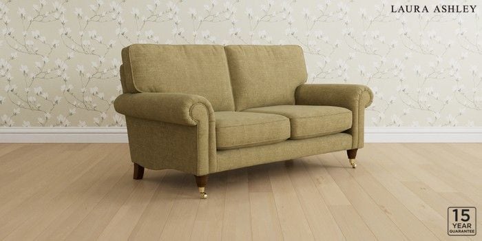6.12.13 Buy Kingston by Laura Ashley 2 Seater Sofa Orla Gold Natural Low Brass Castor - Teak from the Next UK online shop Click here to use our accessible website