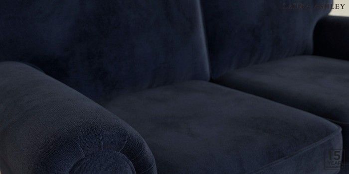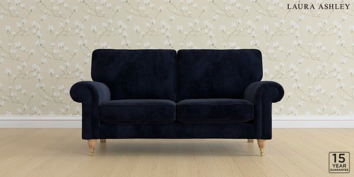 6.12.1 Buy Kingston by Laura Ashley 2 Seater Sofa Orla Midnight Navy Low Brass Castor - Light Oak from the Next UK online shop Click here to use our accessible website