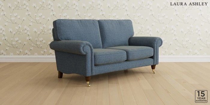 6.12.13 Buy Kingston by Laura Ashley 2 Seater Sofa Orla Seaspray Blue Low Brass Castor - Teak from the Next UK online shop Click here to use our accessible website