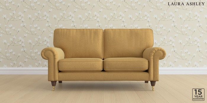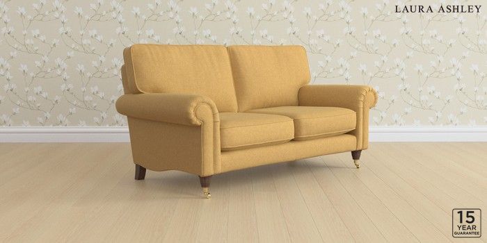 6.12.1 Buy Kingston by Laura Ashley 2 Seater Sofa Peyton Ochre Yellow Low Brass Castor - Chestnut from the Next UK online shop Click here to use our accessible website