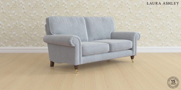 6.12.1 Buy Kingston by Laura Ashley 2 Seater Sofa Peyton Powder Blue Low Brass Castor - Chestnut from the Next UK online shop Click here to use our accessible website