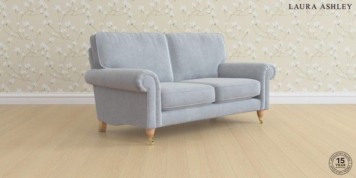 6.12.1 Buy Kingston by Laura Ashley 2 Seater Sofa Peyton Powder Blue Low Brass Castor - Light Oak from the Next UK online shop Click here to use our accessible website