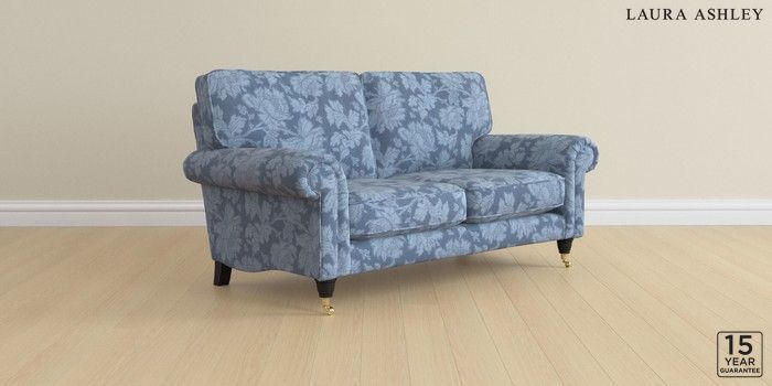 6.12.1 Buy Kingston by Laura Ashley 2 Seater Sofa Tamara Dusky Seaspray Blue Low Brass Castor - Black from the Next UK online shop Click here to use our accessible website