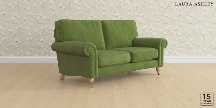 6.12.13 Buy Kingston by Laura Ashley 2 Seater Sofa Tichwell Olive Green Low Chrome Castor - Light Oak from the Next UK online shop Click here to use our accessible website