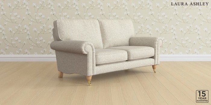 6.12.13 Buy Kingston by Laura Ashley 2 Seater Sofa Tichwell Stone Natural Low Brass Castor - Light Oak from the Next UK online shop Click here to use our accessible website