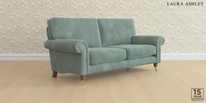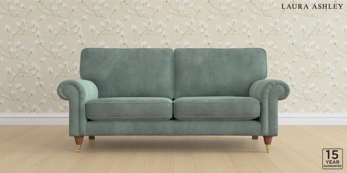 6.12.1 Buy Kingston by Laura Ashley 3 Seater Small Sofa Ailsworth Fern Green Low Brass Castor - Teak from the Next UK online shop Click here to use our accessible website