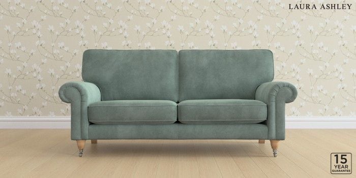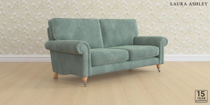 6.12.13 Buy Kingston by Laura Ashley 3 Seater Small Sofa Ailsworth Fern Green Low Chrome Castor - Light Oak from the Next UK online shop Click here to use our accessible website