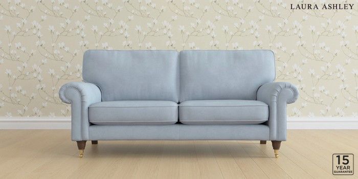 6.12.1 Buy Kingston by Laura Ashley 3 Seater Small Sofa Ailsworth Newport Blue Low Brass Castor - Chestnut from the Next UK online shop Click here to use our accessible website