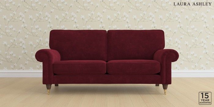 6.12.1 Buy Kingston by Laura Ashley 3 Seater Small Sofa Alwyn Velvet Burgundy Red Low Brass Castor - Chestnut from the Next UK online shop Click here to use our accessible website