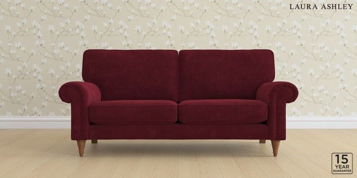 6.12.1 Buy Kingston by Laura Ashley 3 Seater Small Sofa Alwyn Velvet Burgundy Red Low Turned - Teak from the Next UK online shop Click here to use our accessible website
