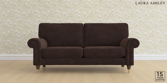 6.12.1 Buy Kingston by Laura Ashley 3 Seater Small Sofa Alwyn Velvet Chocolate Brown Low Brass Castor - Chestnut from the Next UK online shop Click here to use our accessible website