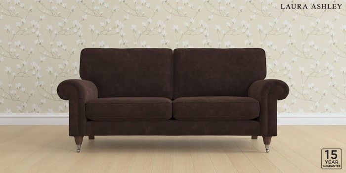 6.12.1 Buy Kingston by Laura Ashley 3 Seater Small Sofa Alwyn Velvet Chocolate Brown Low Chrome Castor - Chestnut from the Next UK online shop Click here to use our accessible website