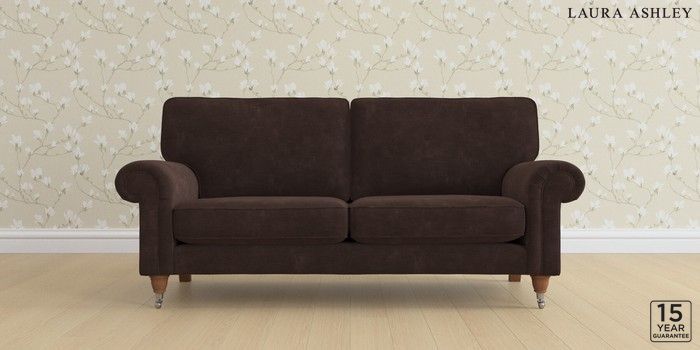6.12.1 Buy Kingston by Laura Ashley 3 Seater Small Sofa Alwyn Velvet Chocolate Brown Low Chrome Castor - Teak from the Next UK online shop Click here to use our accessible website