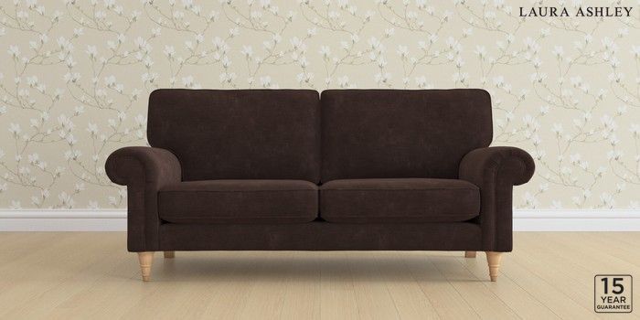 6.12.1 Buy Kingston by Laura Ashley 3 Seater Small Sofa Alwyn Velvet Chocolate Brown Low Turned - Light Oak from the Next UK online shop Click here to use our accessible website