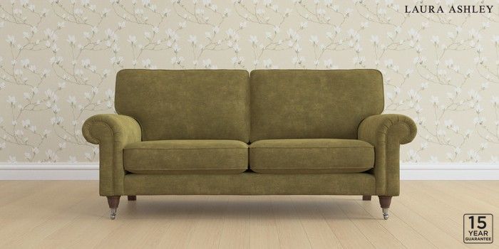 6.12.1 Buy Kingston by Laura Ashley 3 Seater Small Sofa Alwyn Velvet Olive Green Low Chrome Castor - Chestnut from the Next UK online shop Click here to use our accessible website