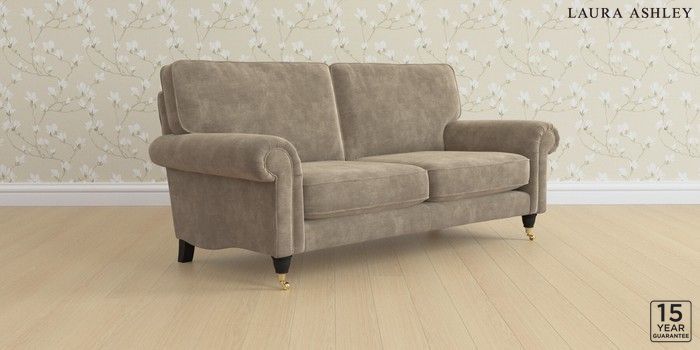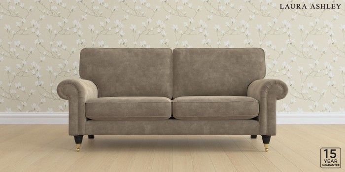 6.12.1 Buy Kingston by Laura Ashley 3 Seater Small Sofa Alwyn Velvet Truffle Natural Low Brass Castor - Black from the Next UK online shop Click here to use our accessible website