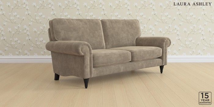 6.12.1 Buy Kingston by Laura Ashley 3 Seater Small Sofa Alwyn Velvet Truffle Natural Low Turned - Black from the Next UK online shop Click here to use our accessible website