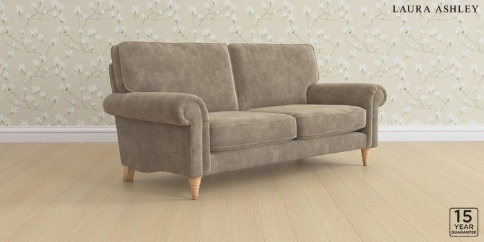 6.12.1 Buy Kingston by Laura Ashley 3 Seater Small Sofa Alwyn Velvet Truffle Natural Low Turned - Light Oak from the Next UK online shop Click here to use our accessible website