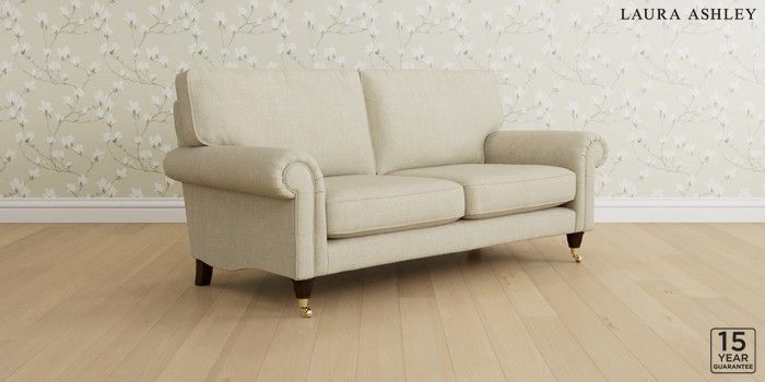 6.12.13 Buy Kingston by Laura Ashley 3 Seater Small Sofa Anneliese Natural Low Brass Castor - Chestnut from the Next UK online shop Click here to use our accessible website