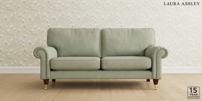 6.12.1 Buy Kingston by Laura Ashley 3 Seater Small Sofa Anneliese Sage Green Low Brass Castor - Teak from the Next UK online shop Click here to use our accessible website