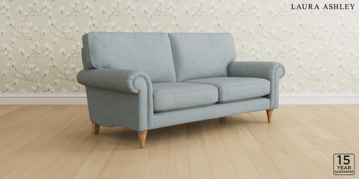 6.12.1 Buy Kingston by Laura Ashley 3 Seater Small Sofa Anneliese Seaspray Blue Low Turned - Light Oak from the Next UK online shop Click here to use our accessible website