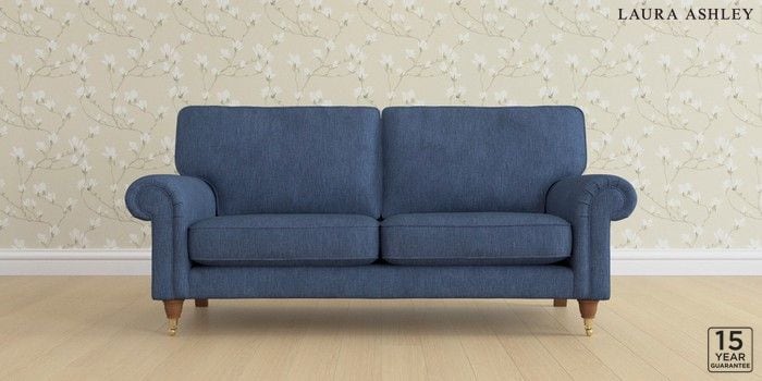 6.12.1 Buy Kingston by Laura Ashley 3 Seater Small Sofa Bainton Midnight Navy Low Brass Castor - Teak from the Next UK online shop Click here to use our accessible website