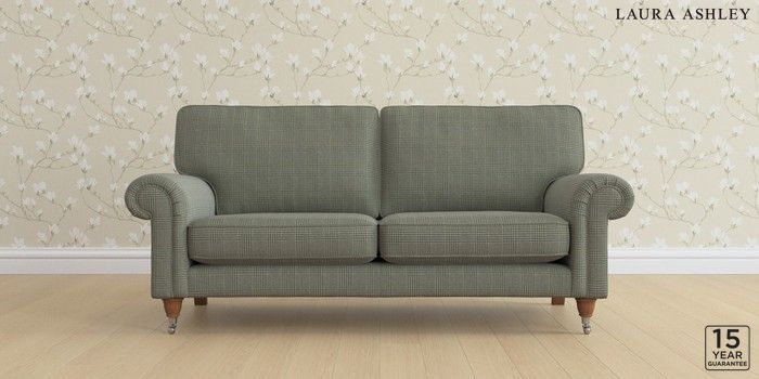 6.12.13 Buy Kingston by Laura Ashley 3 Seater Small Sofa Birchgrove Check Olive Green Low Chrome Castor - Teak from the Next UK online shop Click here to use our accessible website
