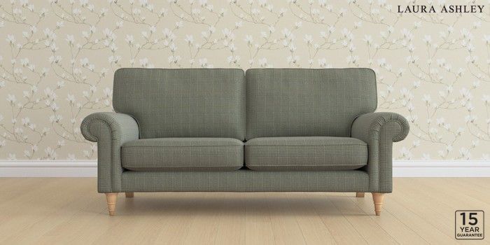 6.12.13 Buy Kingston by Laura Ashley 3 Seater Small Sofa Birchgrove Check Olive Green Low Turned - Light Oak from the Next UK online shop Click here to use our accessible website