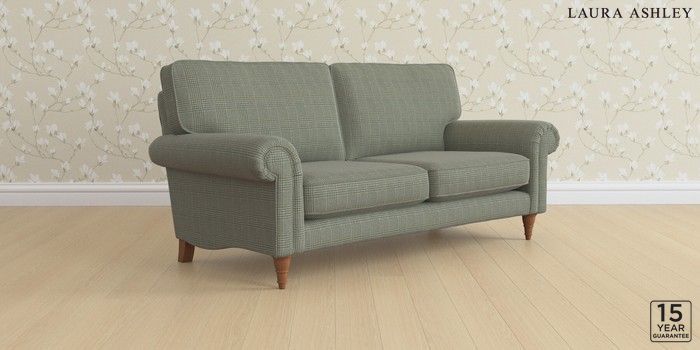 6.12.13 Buy Kingston by Laura Ashley 3 Seater Small Sofa Birchgrove Check Olive Green Low Turned - Teak from the Next UK online shop Click here to use our accessible website