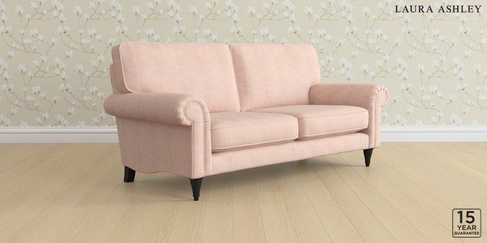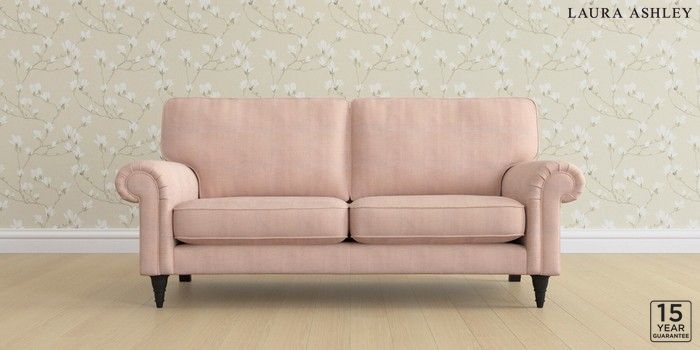 6.12.1 Buy Kingston by Laura Ashley 3 Seater Small Sofa Edwin Chenille Blush Pink Low Turned - Black from the Next UK online shop Click here to use our accessible website