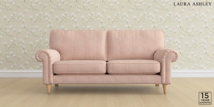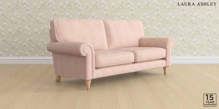 6.12.1 Buy Kingston by Laura Ashley 3 Seater Small Sofa Edwin Chenille Blush Pink Low Turned - Light Oak from the Next UK online shop Click here to use our accessible website