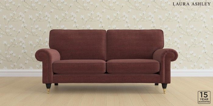 6.12.1 Buy Kingston by Laura Ashley 3 Seater Small Sofa Edwin Chenille Burgundy Red Low Brass Castor - Black from the Next UK online shop Click here to use our accessible website