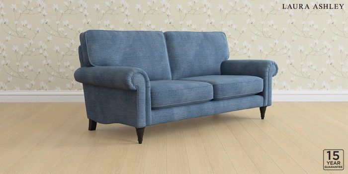 6.12.1 Buy Kingston by Laura Ashley 3 Seater Small Sofa Edwin Chenille Seaspray Blue Low Turned - Black from the Next UK online shop Click here to use our accessible website