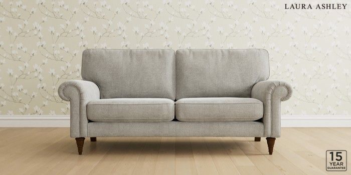 6.12.1 Buy Kingston by Laura Ashley 3 Seater Small Sofa Edwin Chenille Silver Grey Low Turned - Teak from the Next UK online shop Click here to use our accessible website